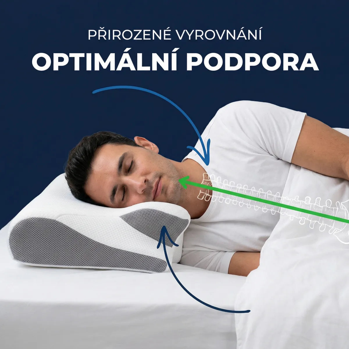 Vaše tělo není stvořeno ke spánku skrčené do klubíčka. Potřebuje otevřený a stabilní cervikální úhel, který uvolní dýchací cesty.